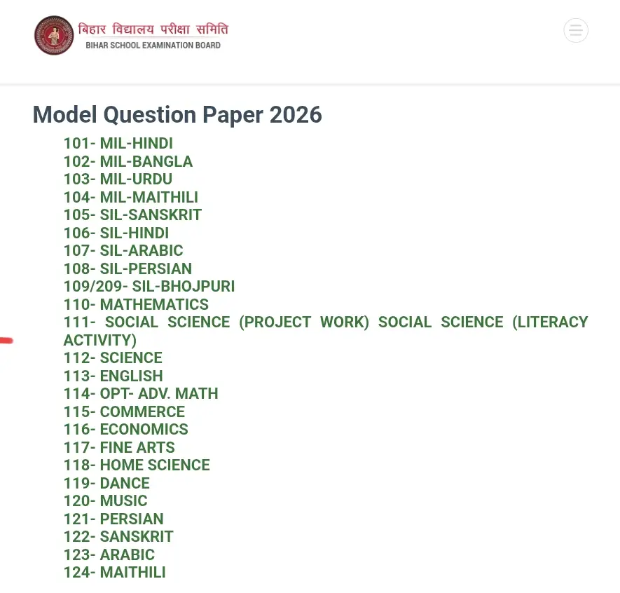 Bihar Board 10th Model Paper 2026:- Bihar Board 10th Model Paper 2026 PDF Download BSEB All subject Question Papers 2025-26. BSEB Class 10 Model Paper 2026 is available on the official website i.e. biharboardonline.bihar.gov.in or biharboardonline.com or biharboardonline.com. Here on this, we have provided a direct link of Model Paper Bihar Board. So all the Students can able to download Bihar Board 10th Sample Papers 2026 pdf. Check the Model Papers for Bihar Board Class 10th Exam for all subjects here. बिहार विद्यालय परीक्षा समिति की तरफ से मैट्रिक के छात्रों के लिए सभी विषय के सैंपल पेपर या मॉडल पेपर जारी कर दिया गया है अगर आप 2026 में 10वी का परीक्षा देने वाले हैं तो आप इस मॉडल पेपर को डाउनलोड करके जरूर पढ़ें जिससे कि आपको परीक्षा देने में बहुत आसानी होगी आप नीचे दिए गए लिंक से सभी विषय के मॉडल पेपर डाउनलोड कर सकते हैं और हम आशा करते हैं कि इस मॉडल पेपर को पढ़ के आपके 2026 में जो आप परीक्षा दजिएगा वह आपका बहुत अच्छा एग्जाम या परीक्षा दे सके। (adsbygoogle = window.adsbygoogle || []).push({});